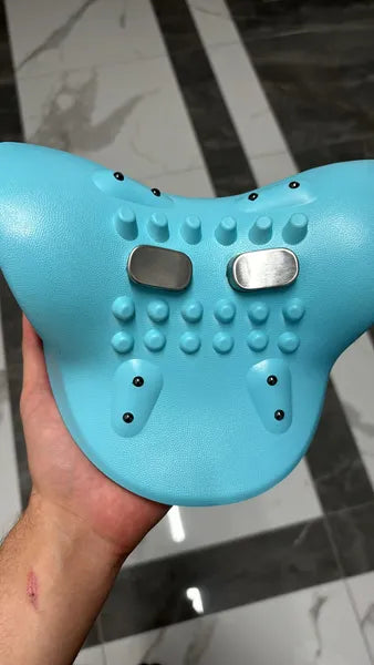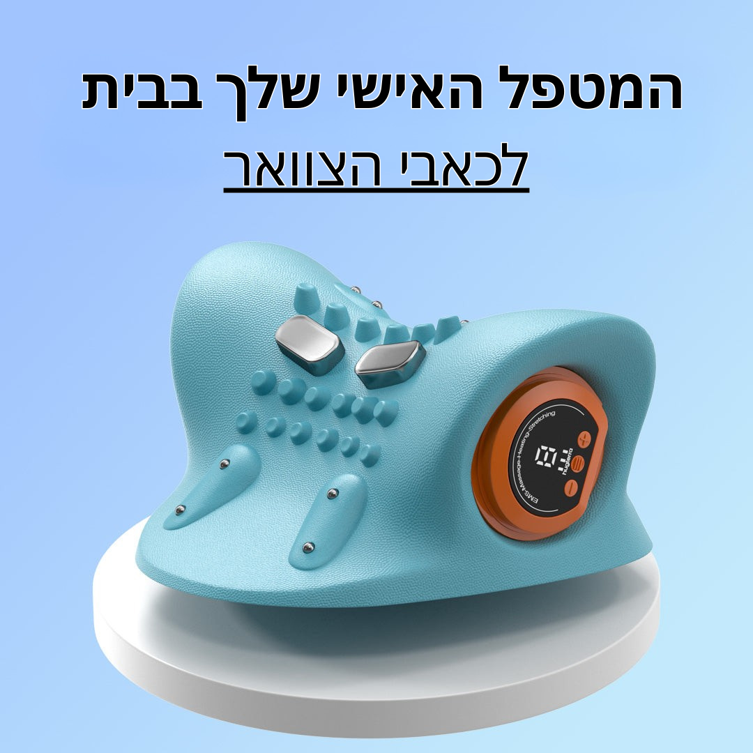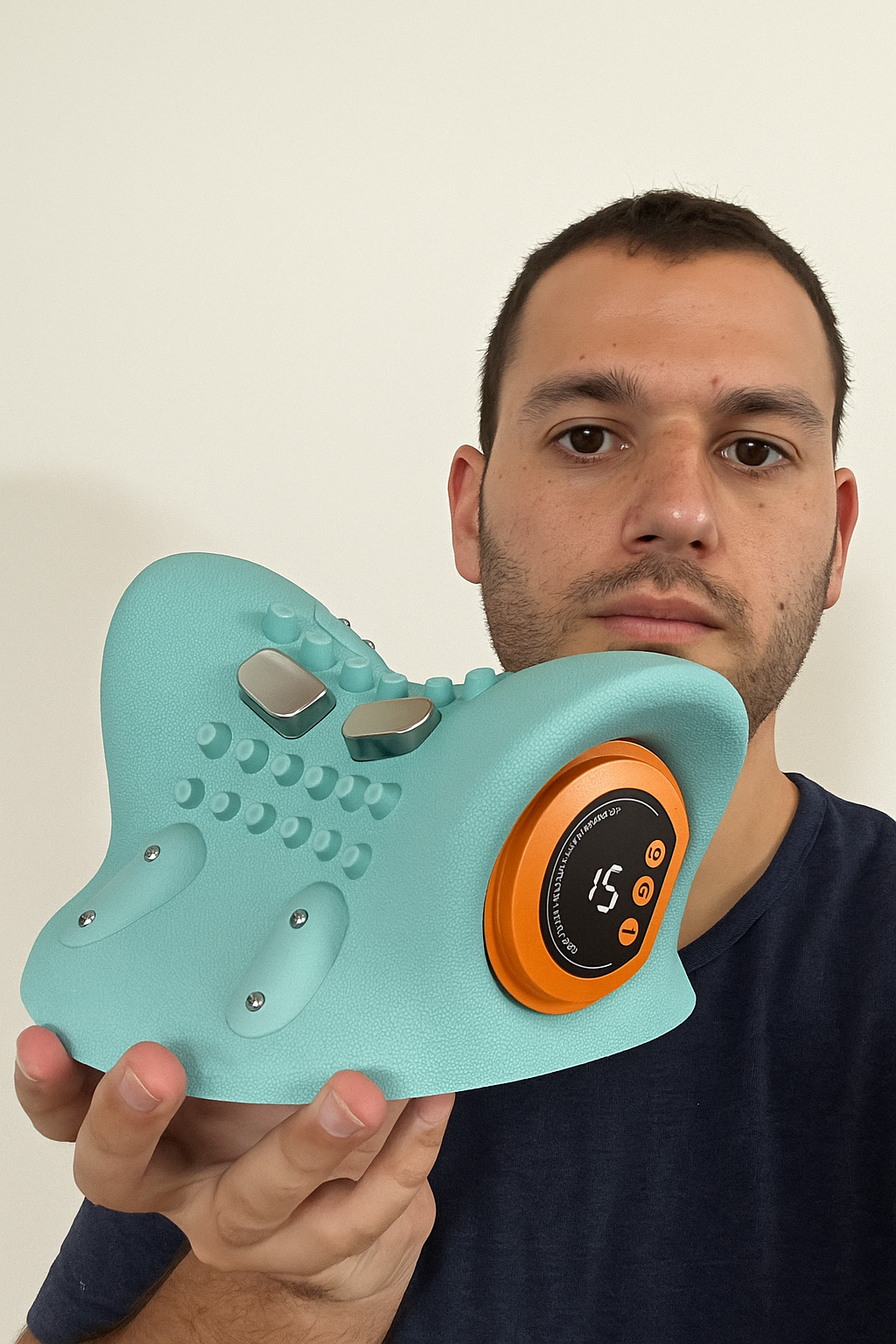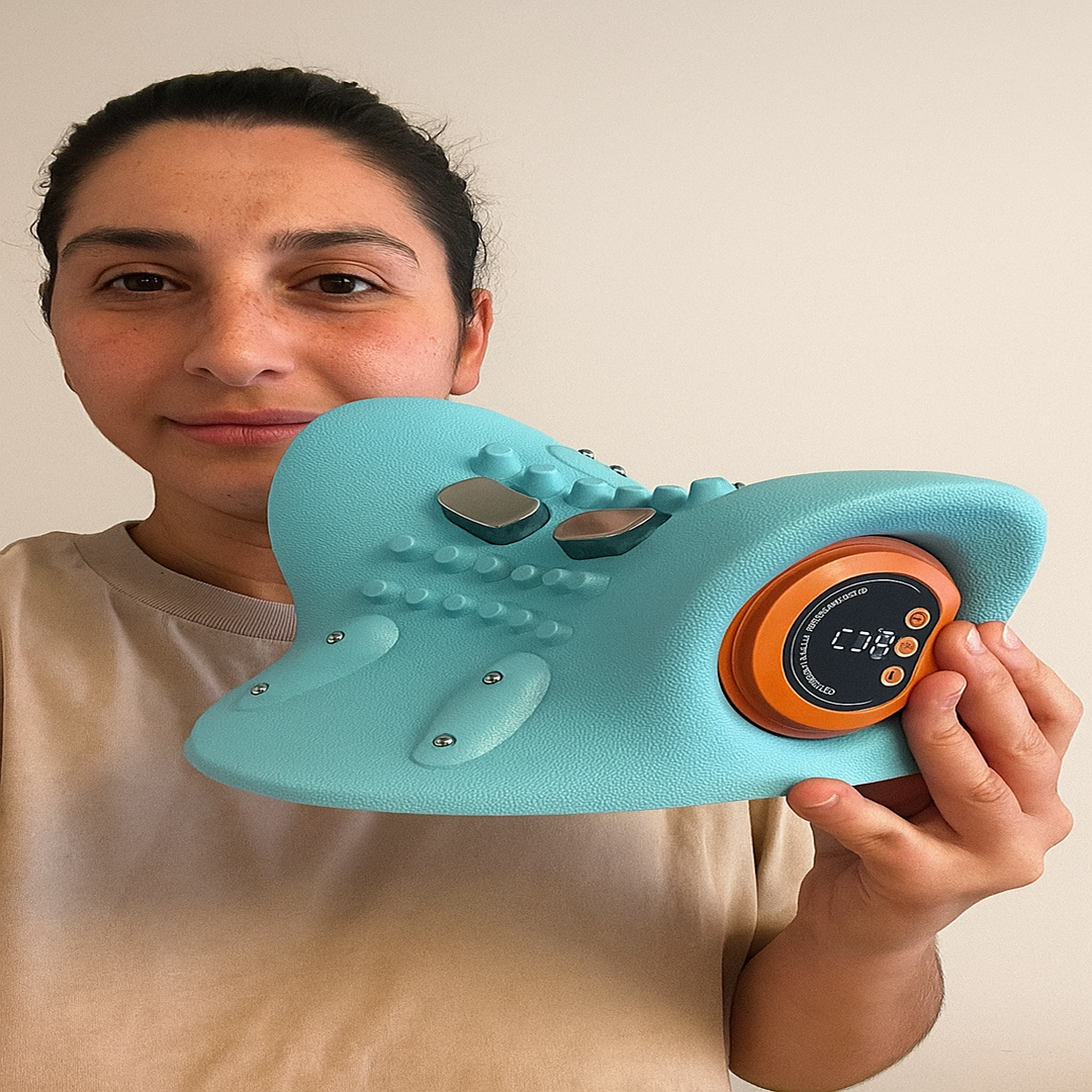 כששוכבים עליו, המכשיר מותח את הצוואר בזווית מדויקת של 26°, שהיא האפקטיבית ביותר לשחרור הלחץ מעמוד השדרה. במקביל, הפולסים החשמליים העדינים מכווצים את השרירים וגורמים להם לפעול כמו משאבות – דוחפים דם באופן טבעי דרך הצוואר ומשפרים את זרימת הדם.