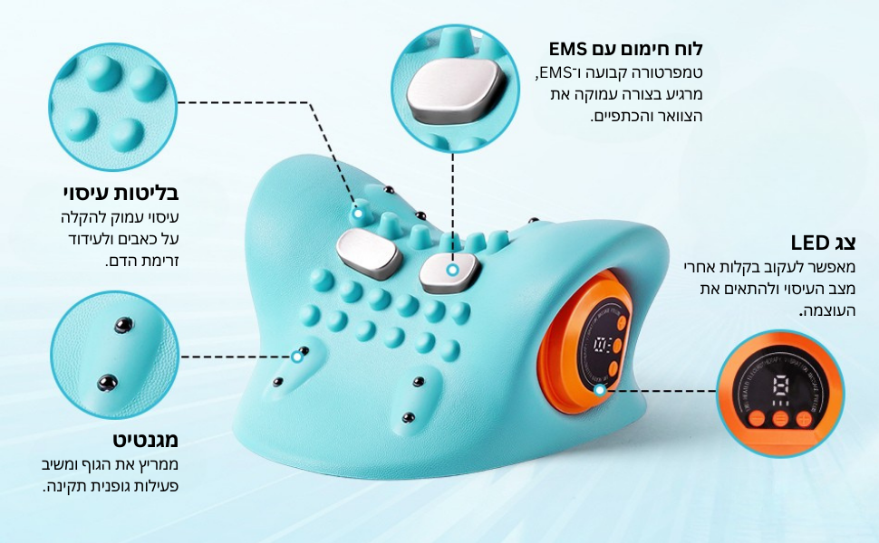 ✔️ מפחית בצורה משמעותית כאבי צוואר באמצעות גירוי לשחרור אנדורפינים – משככי הכאב הטבעיים של הגוף.