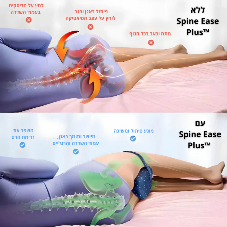 הפתרון? הכנסת כרית ה־™Spine Ease Plus בין הרגליים.